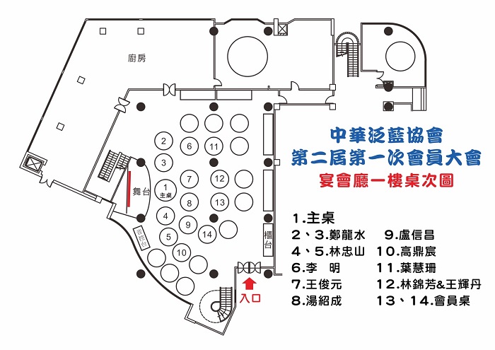 第二届第一次會員大會場地桌次分佈圖