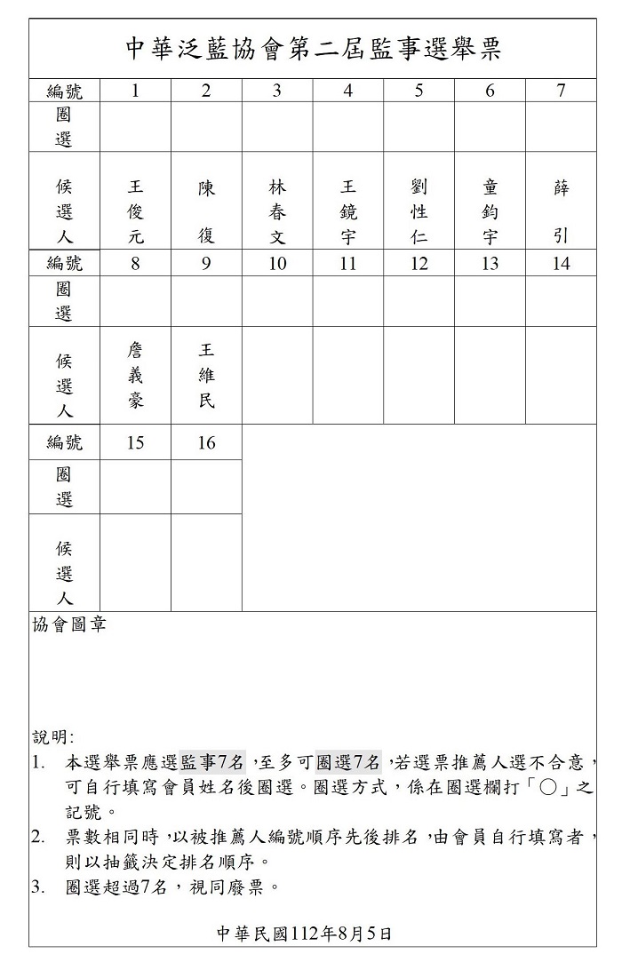 這次的選舉不僅體現會員的參與及選擇,同時也是協會進一步更新及發展的重要里程碑。每一位新當選的成員都代表著協會未來的發展方向及希望。中華泛藍協會衷心感謝所有投票及參與選舉的會員,期待新一屆的組織成員能引領協會邁向更好的未來。