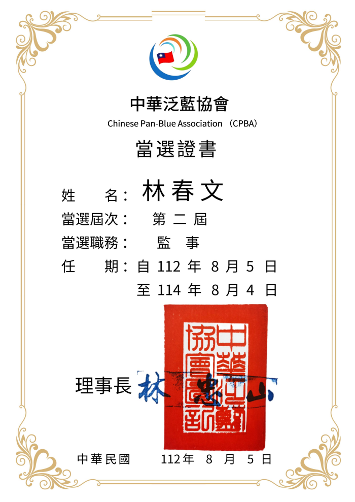 中華泛藍協會換屆盛事 林忠山接任理事長